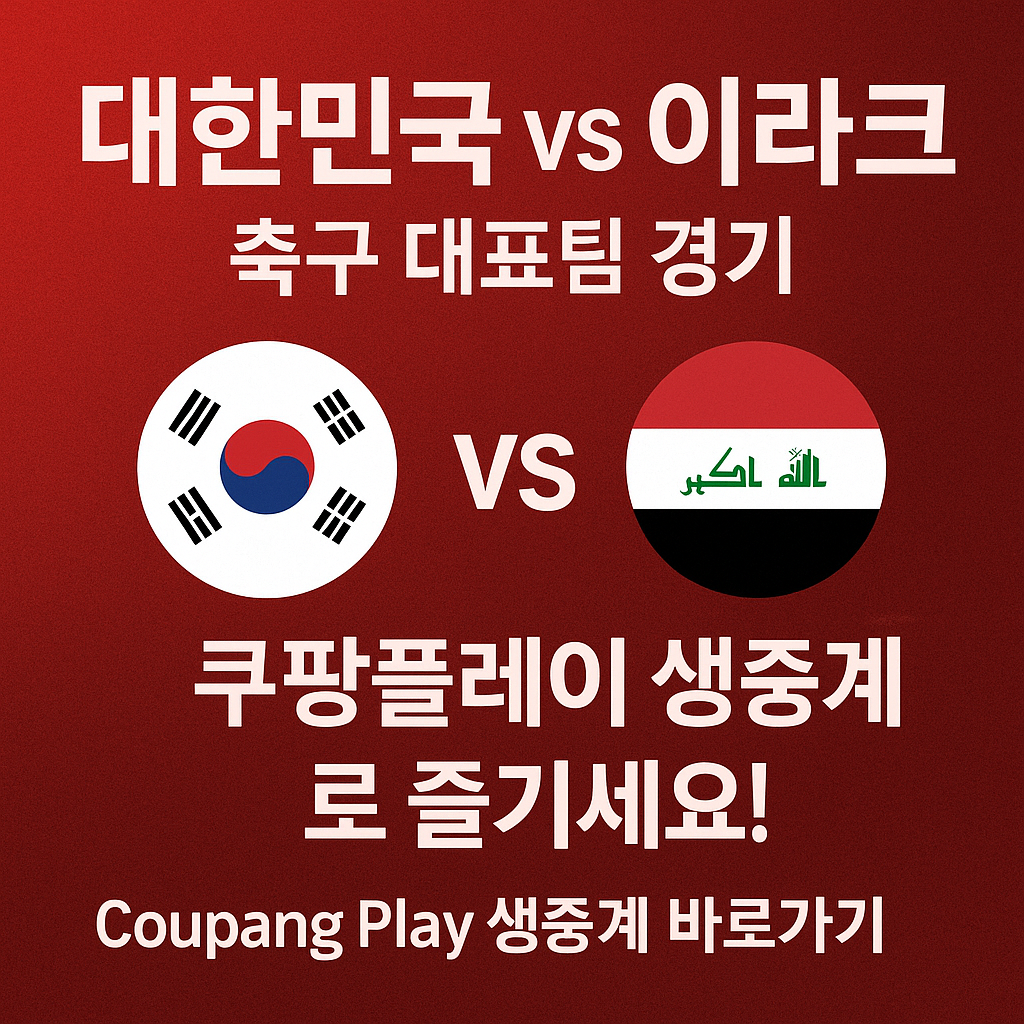 대한민국 축구 대표팀과 이라크의 경기를 쿠팡플레이에서 생중계합니다. 경기 일정, 중계 정보, 시청 방법 등을 자세히 안내해드립니다. 대한민국 축구 대표팀의 이라크전, 쿠팡플레이에서 생중계로 만나보세요!